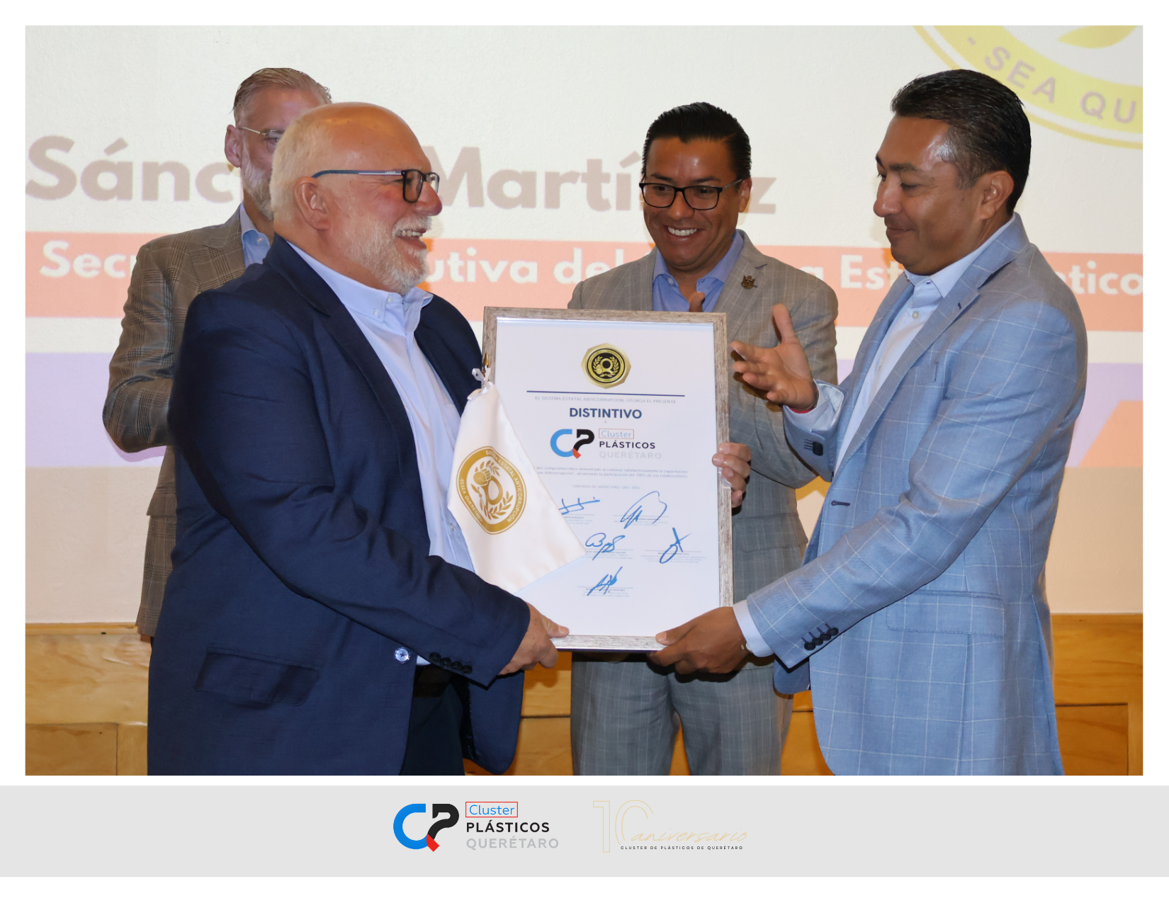 Durante el evento también se entregaron reconocimientos a empresarios que han contribuido al desarrollo del clúster y se otorgó al organismo el Distintivo Empresas Anticorrupción, entregado por el Sistema Estatal Anticorrupción de Querétaro.